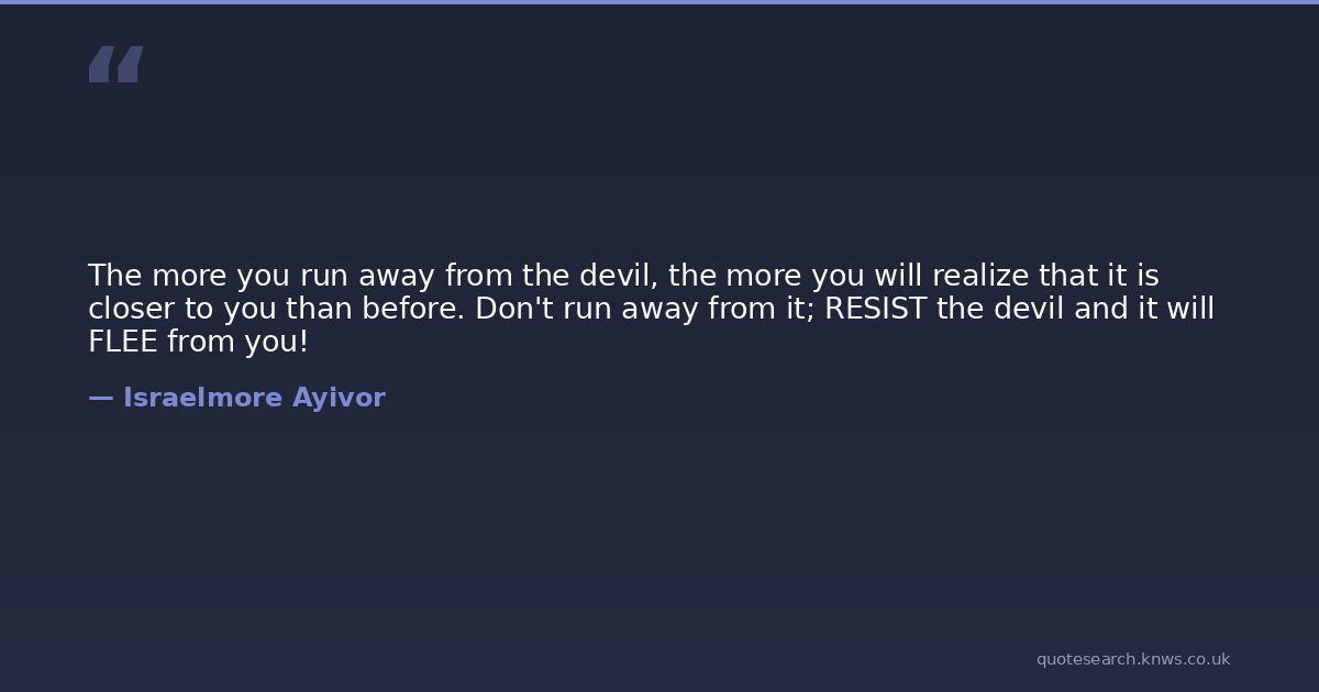 The more you run away from the devil, the more you will realize that it is closer to you than before. Don't run away from it; RESIST the devil and it will FLEE from you!