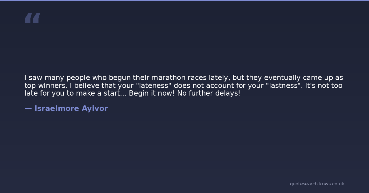 I saw many people who begun their marathon races lately, but they eventually came up as top winners. I believe that your "lateness" does not account for your "lastness". It's not too late for you to make a start... Begin it now! No further delays!