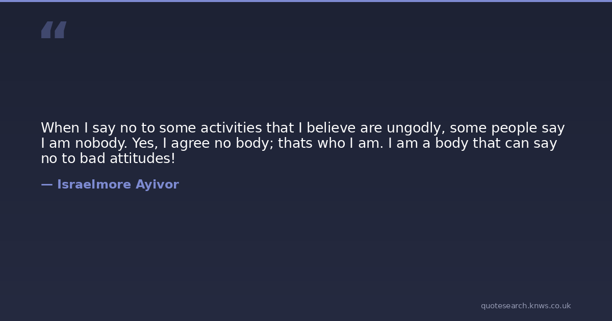 When I say no to some activities that I believe are ungodly, some people say I am nobody. Yes, I agree no body; thats who I am. I am a body that can say no to bad attitudes!