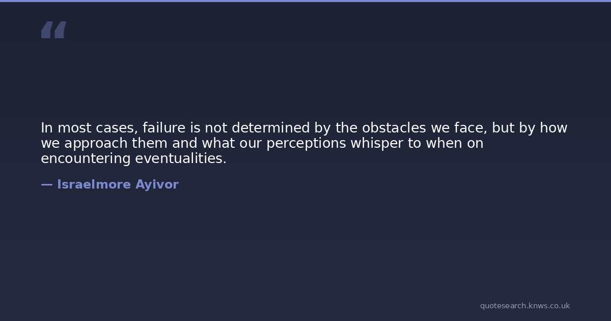 In most cases, failure is not determined by the obstacles we face, but by how we approach them and what our perceptions whisper to when on encountering eventualities.