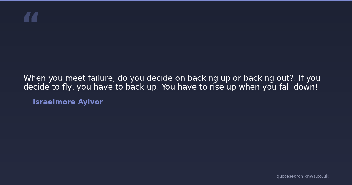 When you meet failure, do you decide on backing up or backing out?. If you decide to fly, you have to back up. You have to rise up when you fall down!