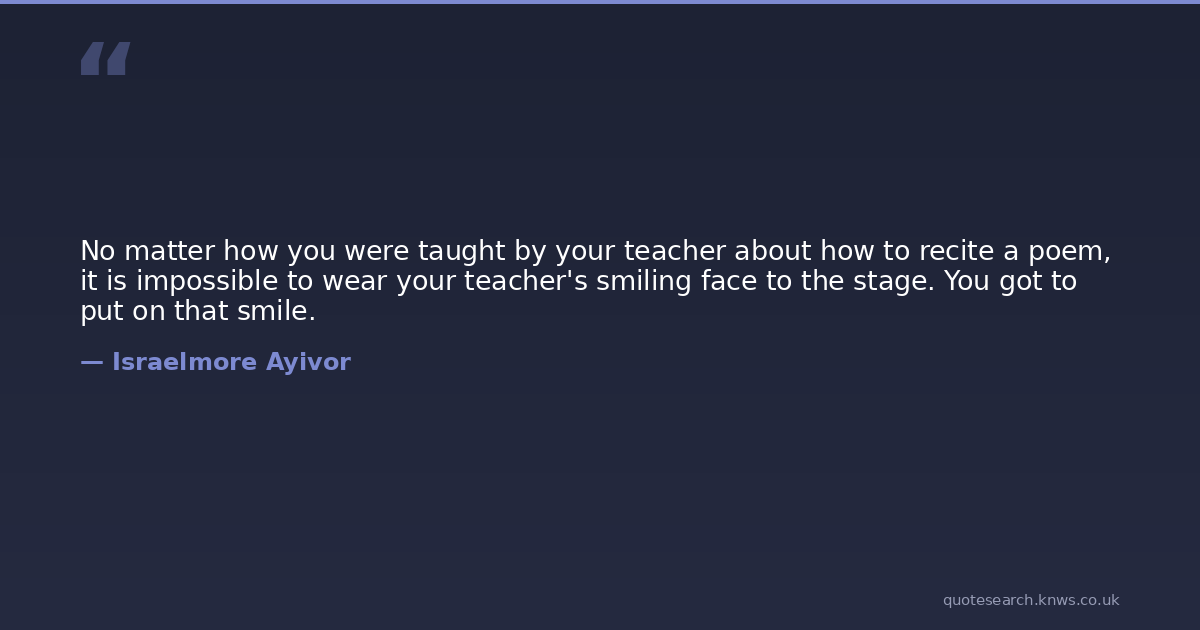No matter how you were taught by your teacher about how to recite a poem, it is impossible to wear your teacher's smiling face to the stage. You got to put on that smile.