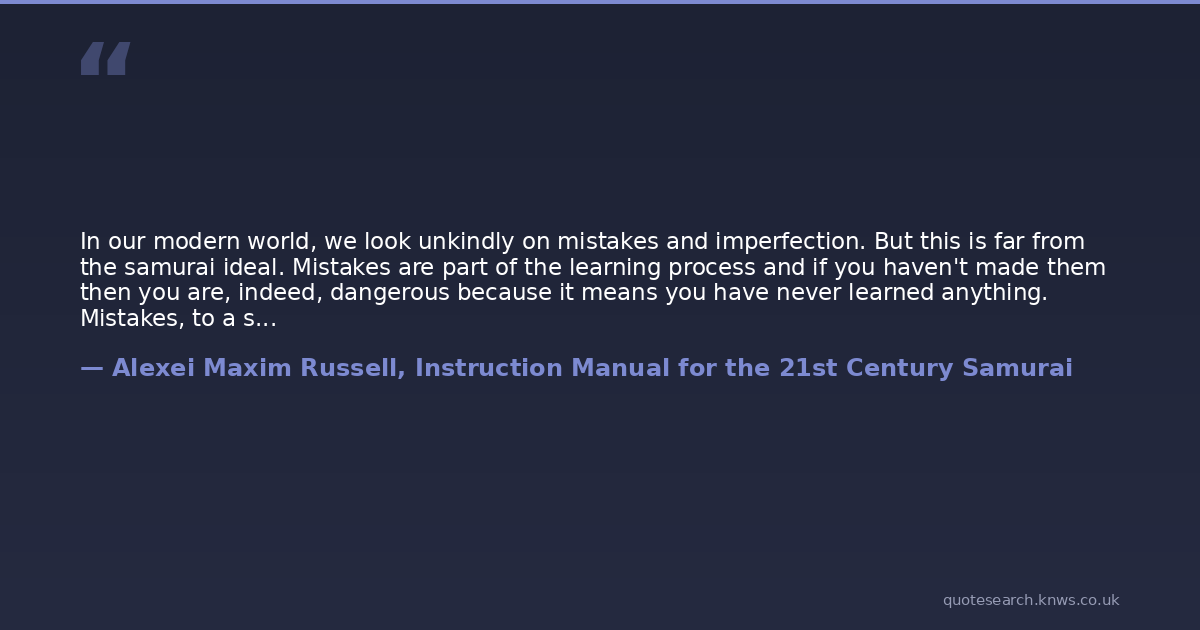 In our modern world, we look unkindly on mistakes and imperfection. But this is far from the samurai ideal. Mistakes are part of the learning process and if you haven't made them then you are, indeed, dangerous because it means you have never learned anything. Mistakes, to a samurai, are the proof of your learning.