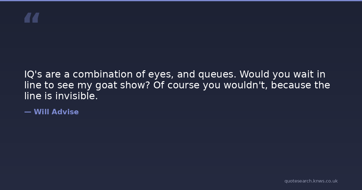 IQ's are a combination of eyes, and queues. Would you wait in line to see my goat show? Of course you wouldn't, because the line is invisible.
