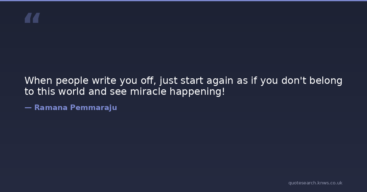 When people write you off, just start again as if you don't belong to this world and see miracle happening!