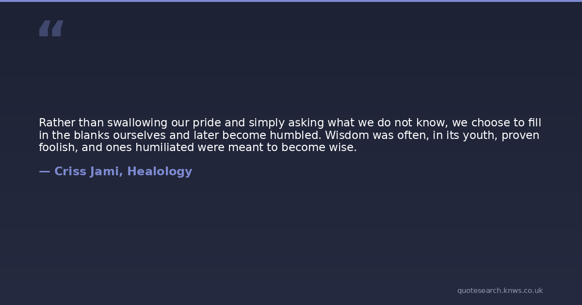Rather than swallowing our pride and simply asking what we do not know, we choose to fill in the blanks ourselves and later become humbled. Wisdom was often, in its youth, proven foolish, and ones humiliated were meant to become wise.