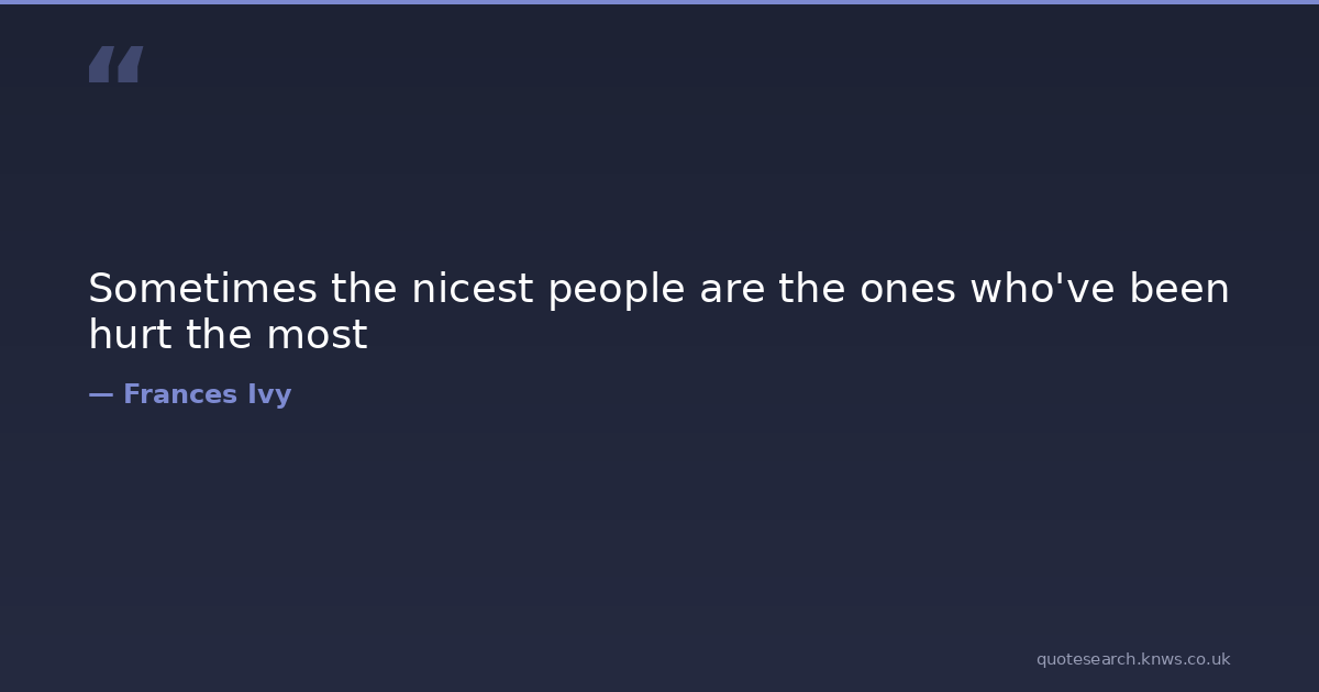 Sometimes the nicest people are the ones who've been hurt the most goodness life-lessons pain sadness Download Image Share on X Share on Facebook Copy Link