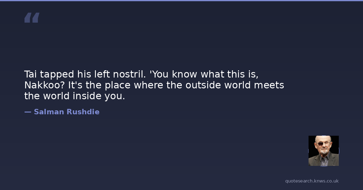 Tai tapped his left nostril. 'You know what this is, Nakkoo? It's the place where the outside world meets the world inside you.