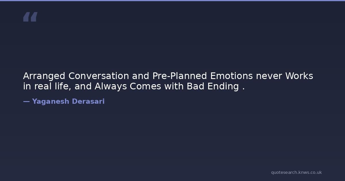Arranged Conversation and Pre-Planned Emotions never Works in real life, and Always Comes with Bad Ending .