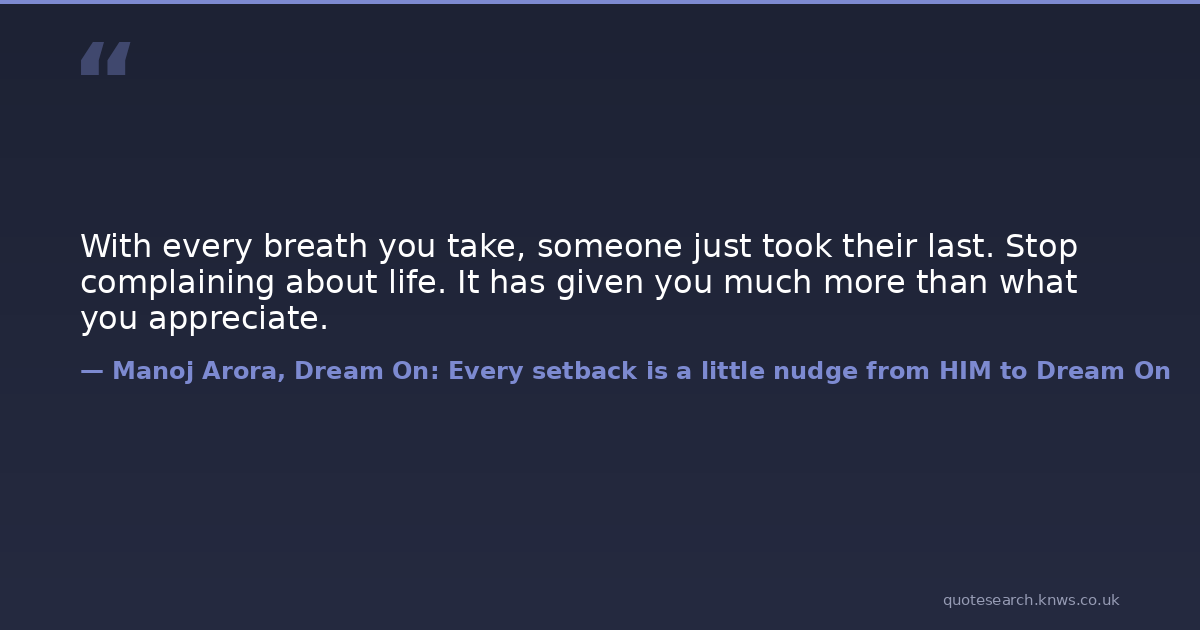 With every breath you take, someone just took their last. Stop complaining about life. It has given you much more than what you appreciate.