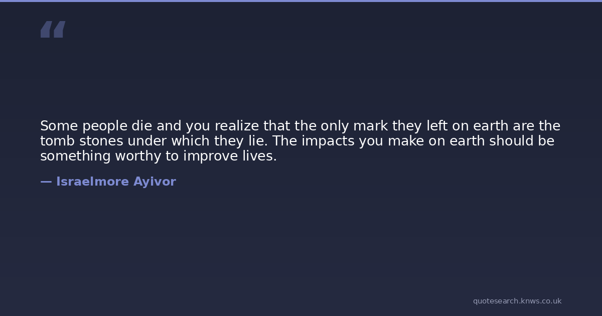 Some people die and you realize that the only mark they left on earth are the tomb stones under which they lie. The impacts you make on earth should be something worthy to improve lives.