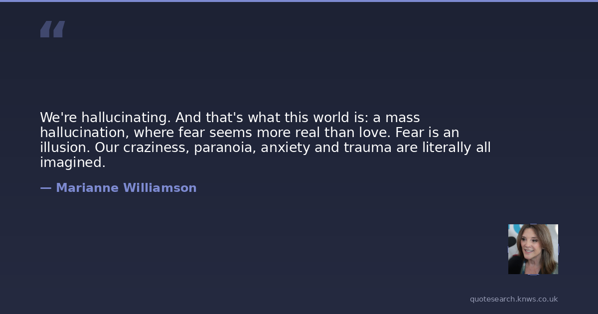 We're hallucinating. And that's what this world is: a mass hallucination, where fear seems more real than love. Fear is an illusion. Our craziness, paranoia, anxiety and trauma are literally all imagined.