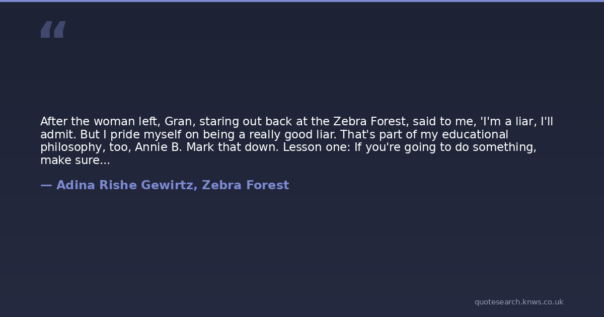 After the woman left, Gran, staring out back at the Zebra Forest, said to me, 'I'm a liar, I'll admit. But I pride myself on being a really good liar. That's part of my educational philosophy, too, Annie B. Mark that down. Lesson one: If you're going to do something, make sure to do it with excellence.