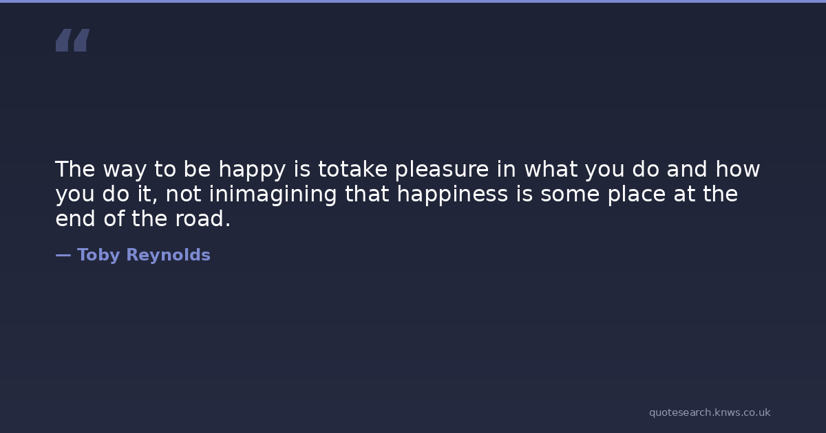 The way to be happy is totake pleasure in what you do and how you do it, not inimagining that happiness is some place at the end of the road.
