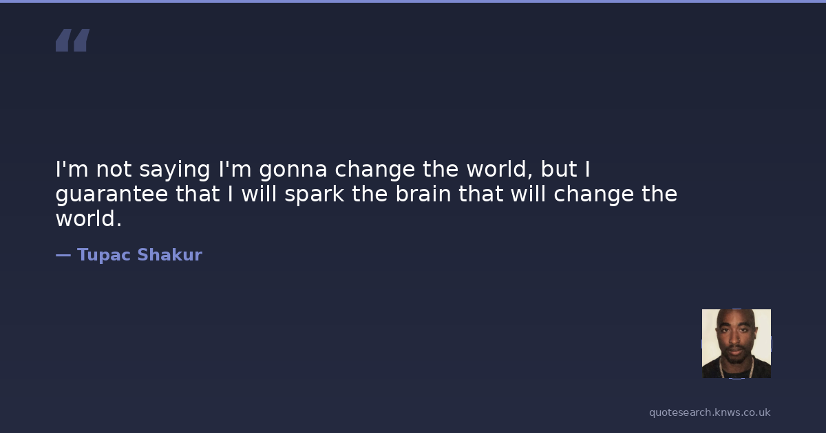 I'm not saying I'm gonna change the world, but I guarantee that I will spark the brain that will change the world.