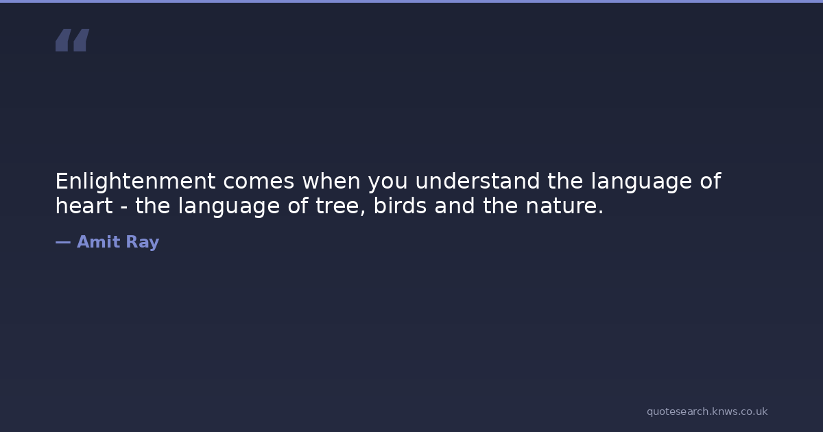 Enlightenment comes when you understand the language of heart - the language of tree, birds and the nature.