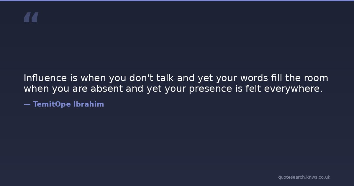 Influence is when you don't talk and yet your words fill the room when you are absent and yet your presence is felt everywhere.