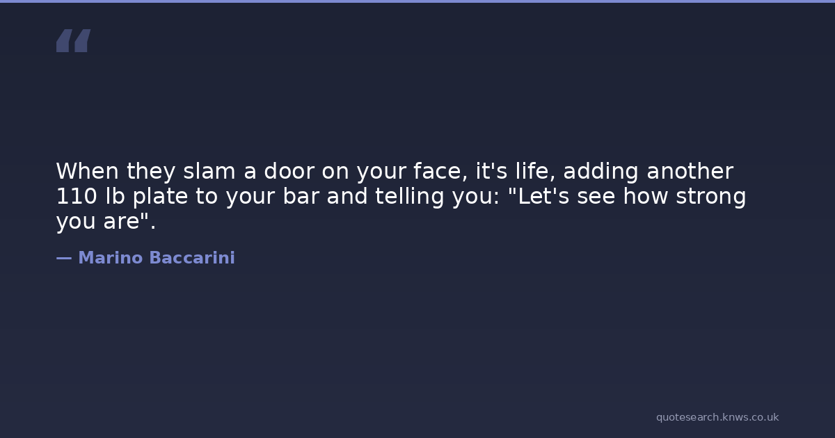 When they slam a door on your face, it's life, adding another 110 lb plate to your bar and telling you: "Let's see how strong you are".
