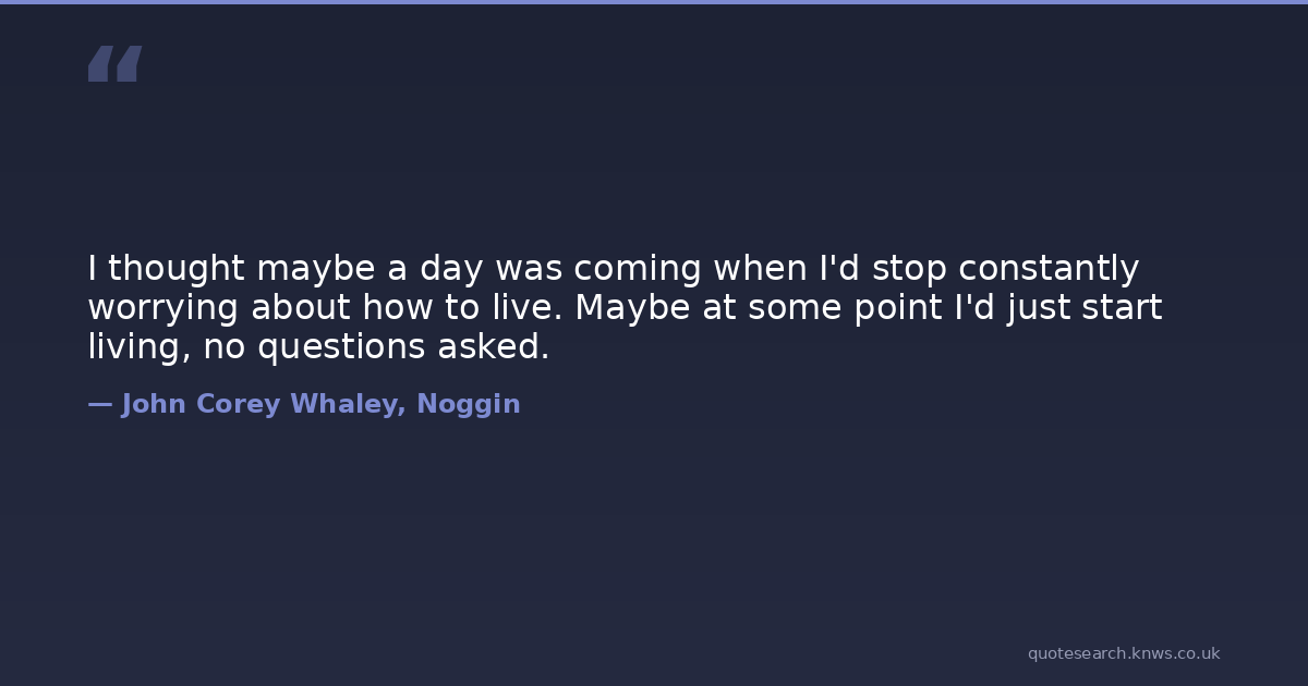 I thought maybe a day was coming when I'd stop constantly worrying about how to live. Maybe at some point I'd just start living, no questions asked.