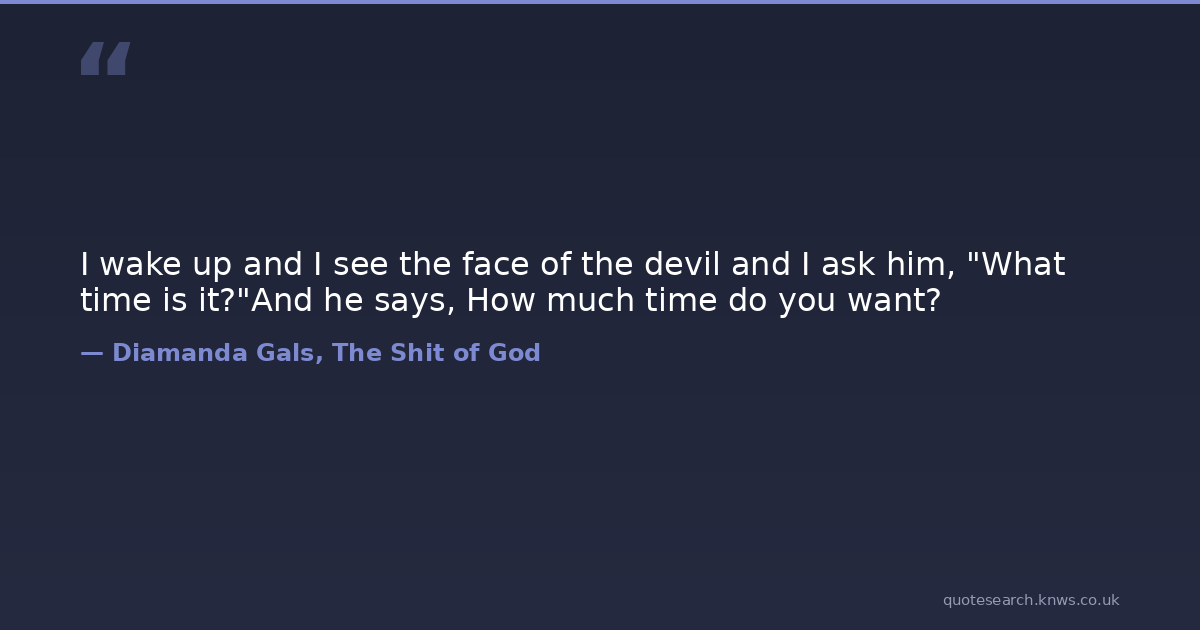 I wake up and I see the face of the devil and I ask him, "What time is it?"And he says, How much time do you want?