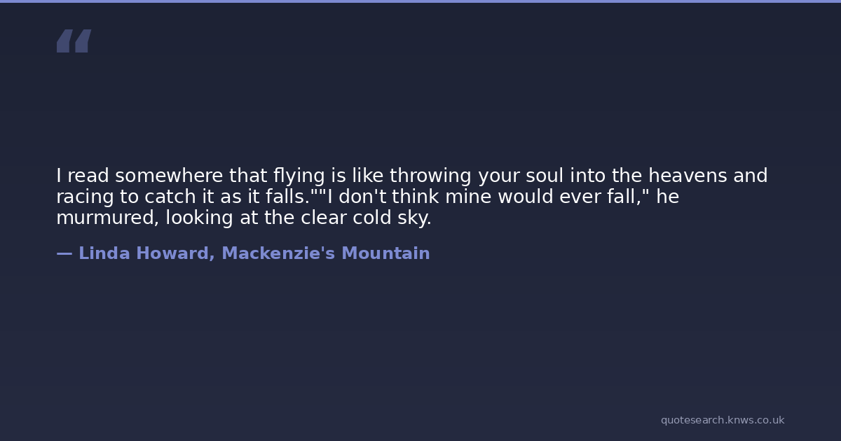 I read somewhere that flying is like throwing your soul into the heavens and racing to catch it as it falls.""I don't think mine would ever fall," he murmured, looking at the clear cold sky.