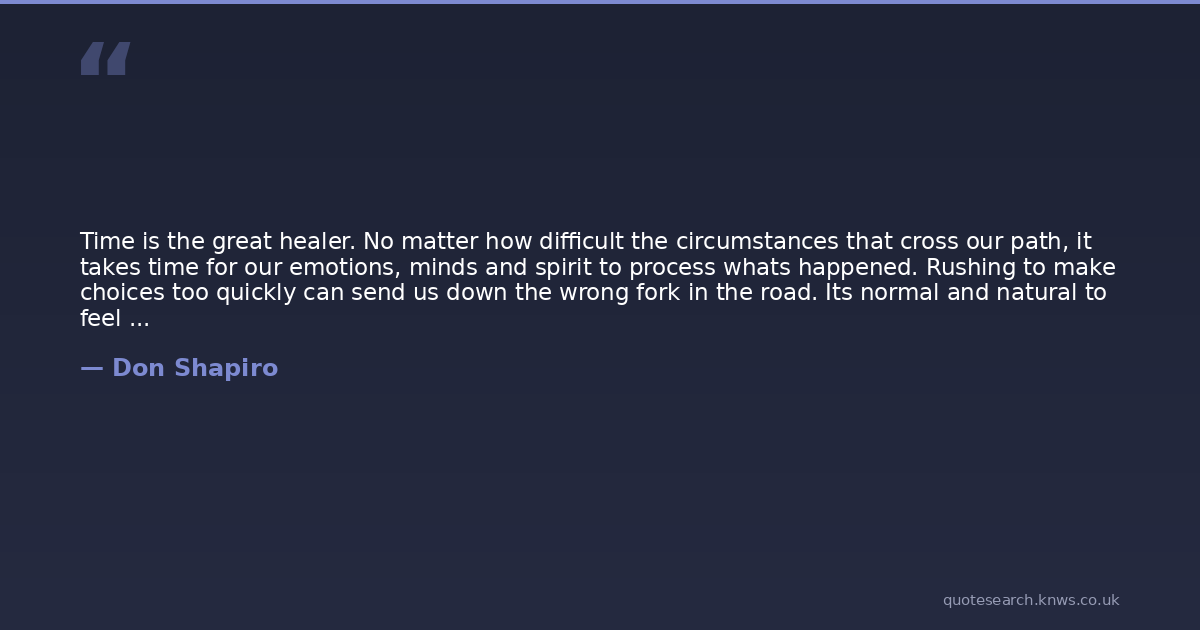 Time is the great healer. No matter how difficult the circumstances that cross our path, it takes time for our emotions, minds and spirit to process whats happened. Rushing to make choices too quickly can send us down the wrong fork in the road. Its normal and natural to feel overwhelmed, out of sorts and confused when a major change knocks on our door. While you may be forced to make some choices quickly, delay as many choices as possible until time has worked its magic. When you feel on solid ground again, you will be ready to make better choices about the future.