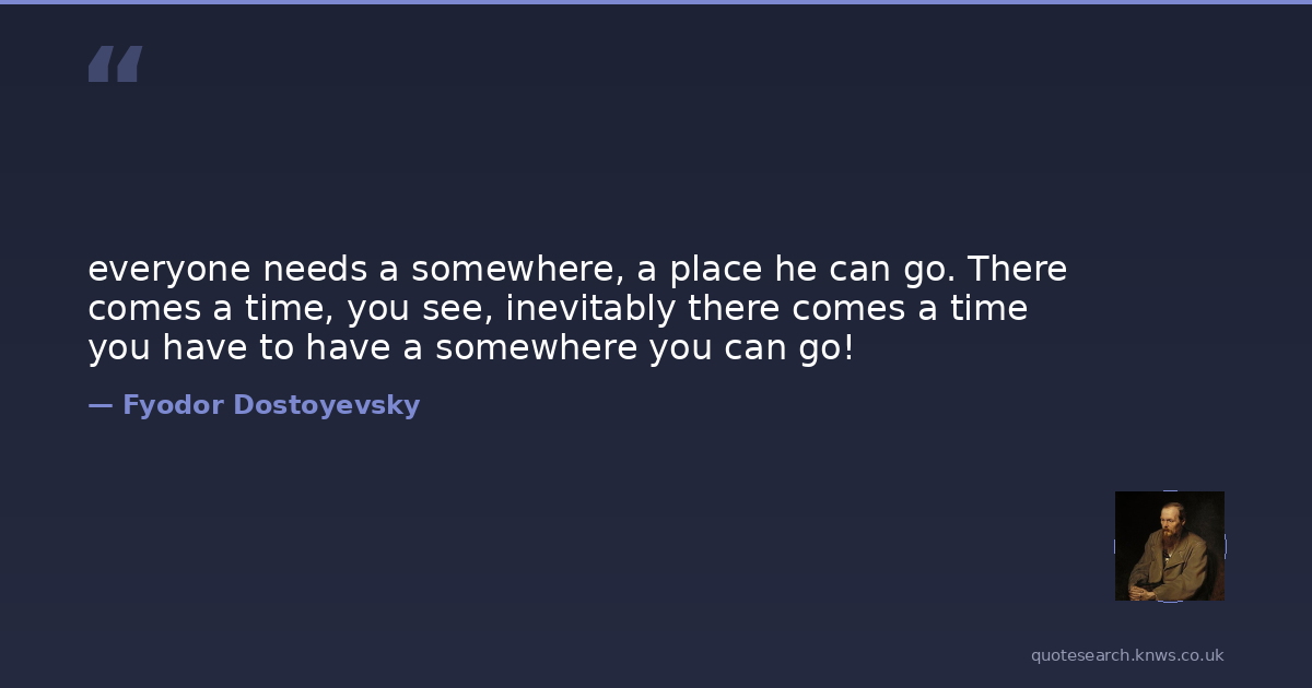 everyone needs a somewhere, a place he can go. There comes a time, you see, inevitably there comes a time you have to have a somewhere you can go!
