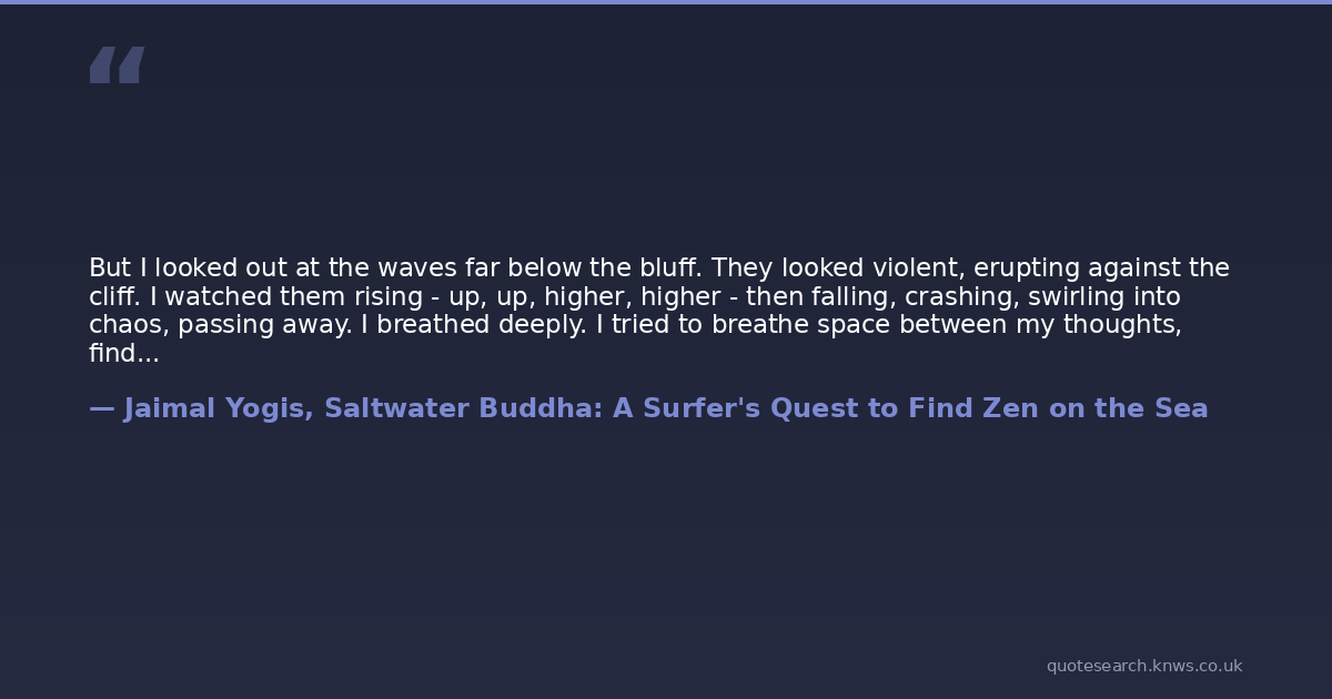 But I looked out at the waves far below the bluff. They looked violent, erupting against the cliff. I watched them rising - up, up, higher, higher - then falling, crashing, swirling into chaos, passing away. I breathed deeply. I tried to breathe space between my thoughts, find the space between the anger.