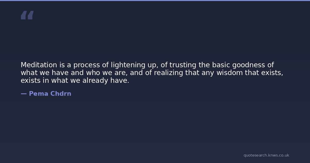Meditation is a process of lightening up, of trusting the basic goodness of what we have and who we are, and of realizing that any wisdom that exists, exists in what we already have.