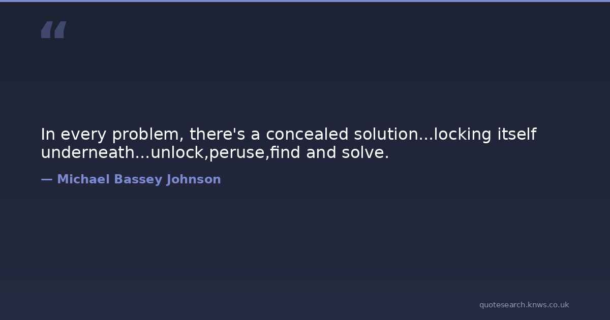 In every problem, there's a concealed solution...locking itself underneath...unlock,peruse,find and solve.