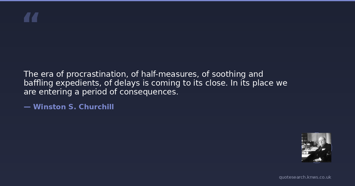 The era of procrastination, of half-measures, of soothing and baffling expedients, of delays is coming to its close. In its place we are entering a period of consequences.