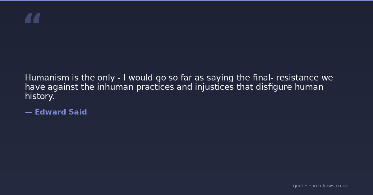 Humanism is the only - I would go so far as saying the final- resistance we have against the inhuman practices and injustices that disfigure human history.