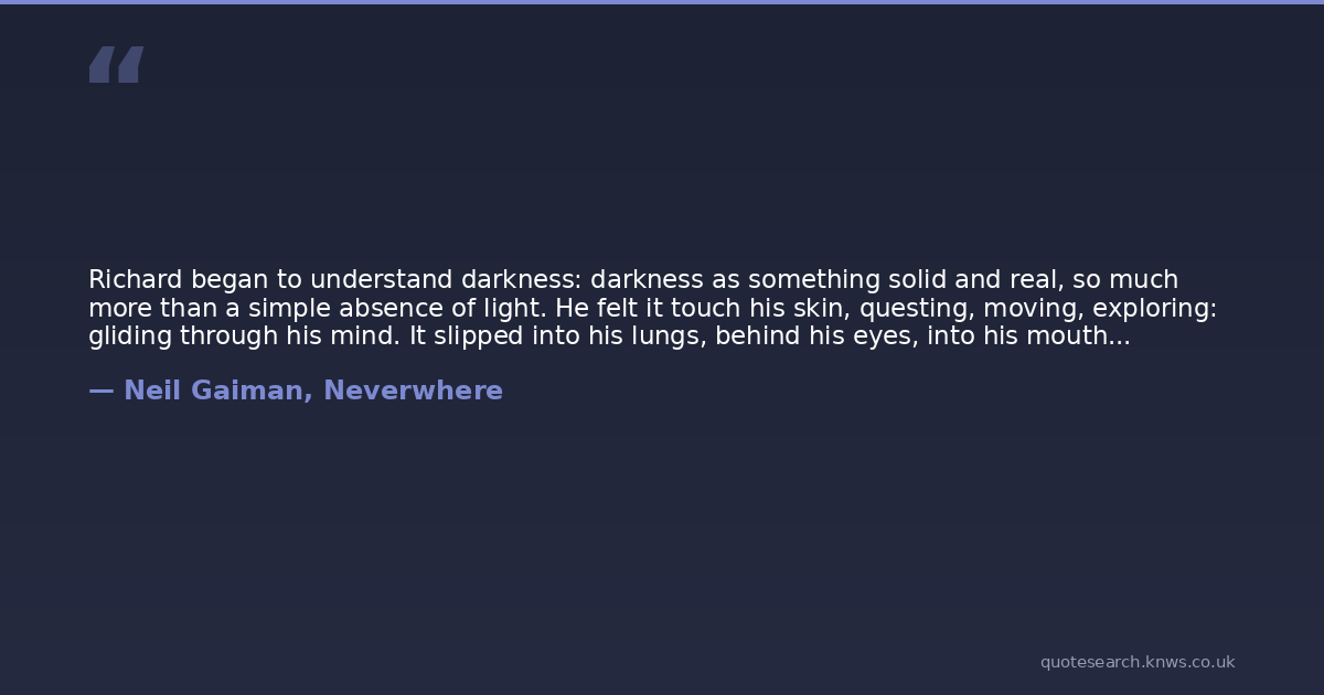 Richard began to understand darkness: darkness as something solid and real, so much more than a simple absence of light. He felt it touch his skin, questing, moving, exploring: gliding through his mind. It slipped into his lungs, behind his eyes, into his mouth...
