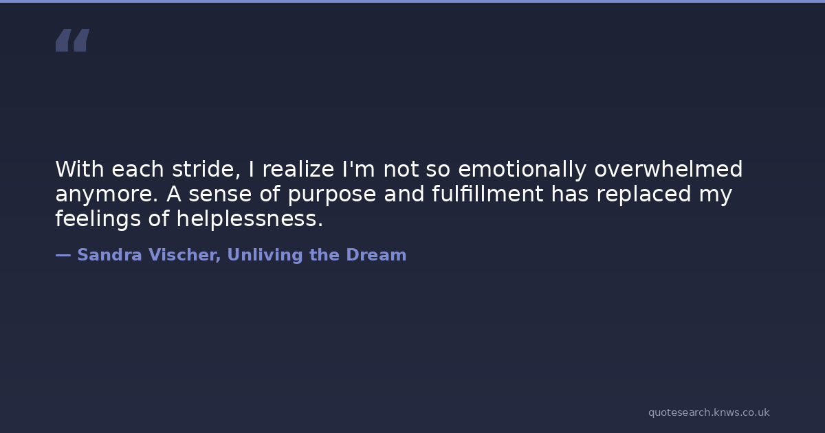 With each stride, I realize I'm not so emotionally overwhelmed anymore. A sense of purpose and fulfillment has replaced my feelings of helplessness.