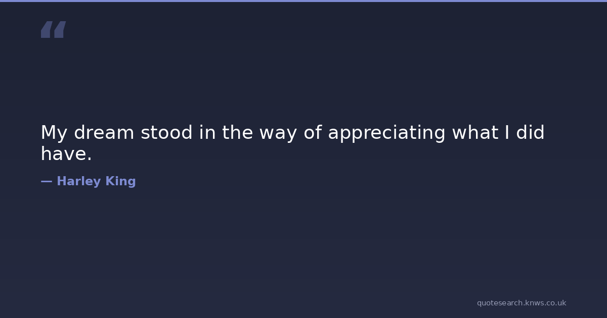 My dream stood in the way of appreciating what I did have. appreciation dream Download Image Share on X Share on Facebook Copy Link