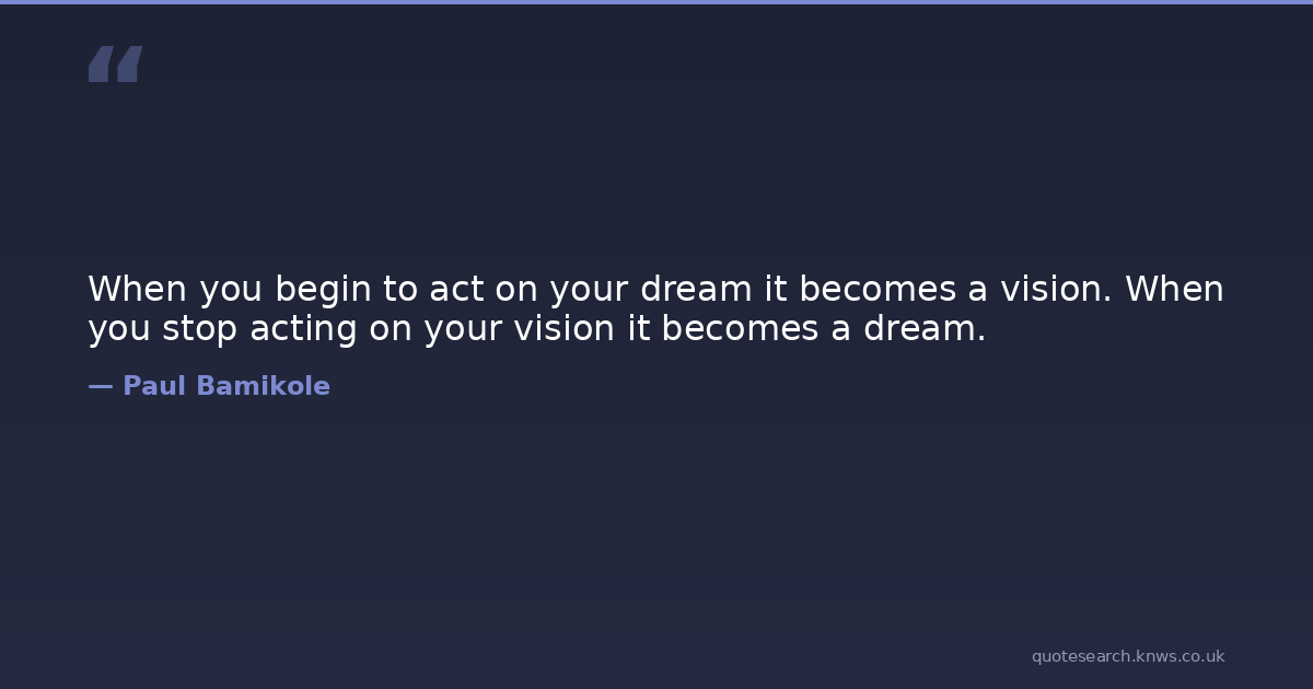 When you begin to act on your dream it becomes a vision. When you stop acting on your vision it becomes a dream.
