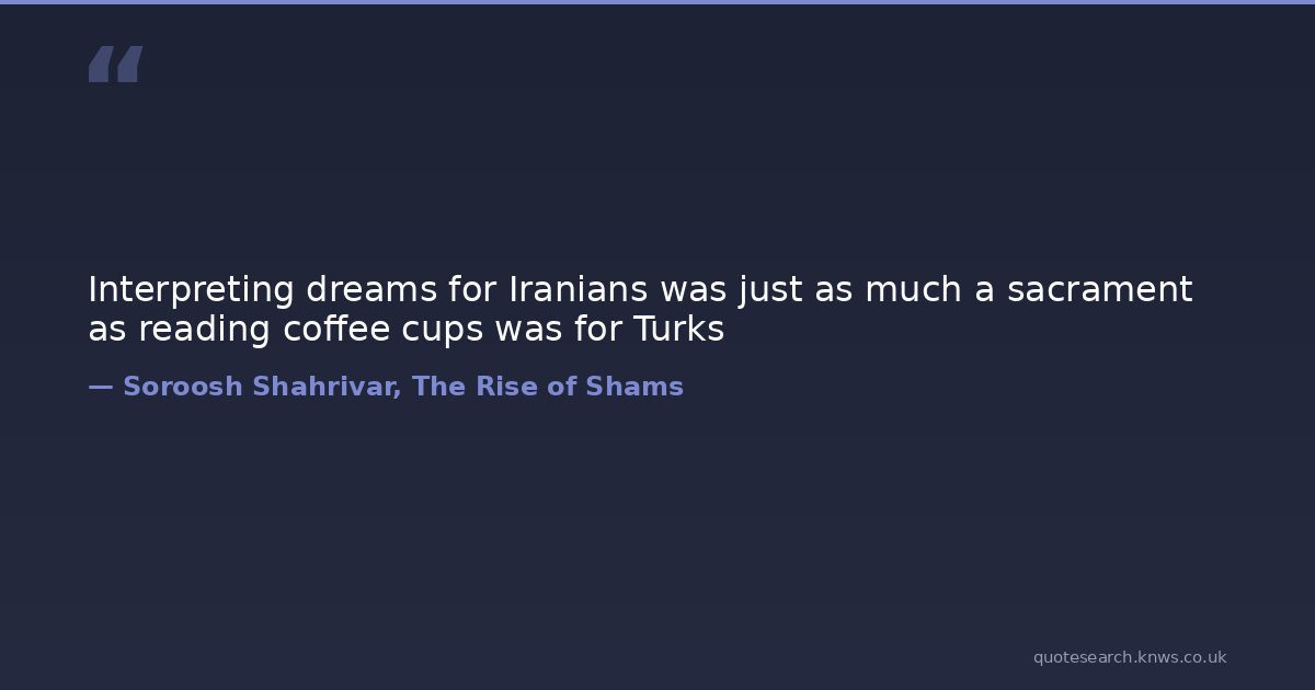 Interpreting dreams for Iranians was just as much a sacrament as reading coffee cups was for Turks