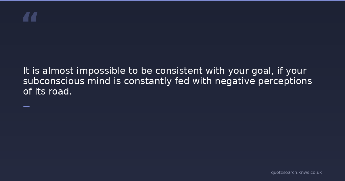 It is almost impossible to be consistent with your goal, if your subconscious mind is constantly fed with negative perceptions of its road.