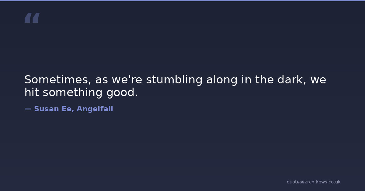Sometimes, as we're stumbling along in the dark, we hit something good.