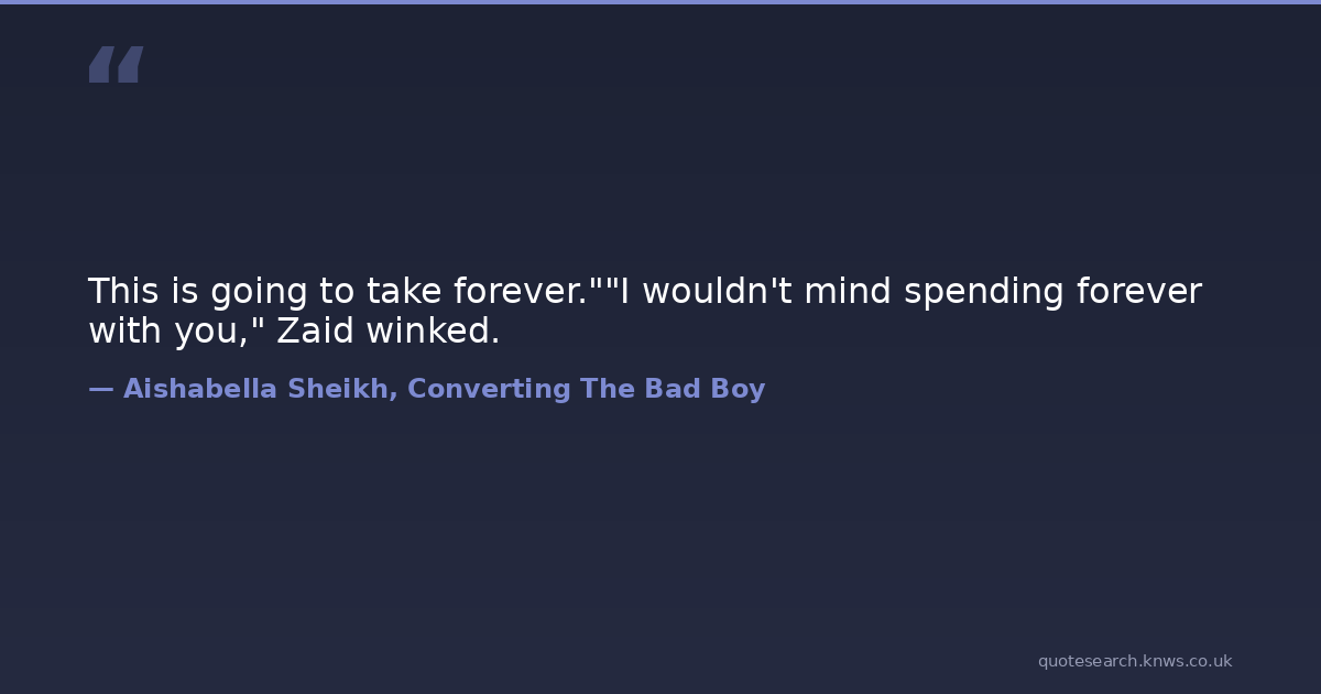 This is going to take forever.""I wouldn't mind spending forever with you," Zaid winked.