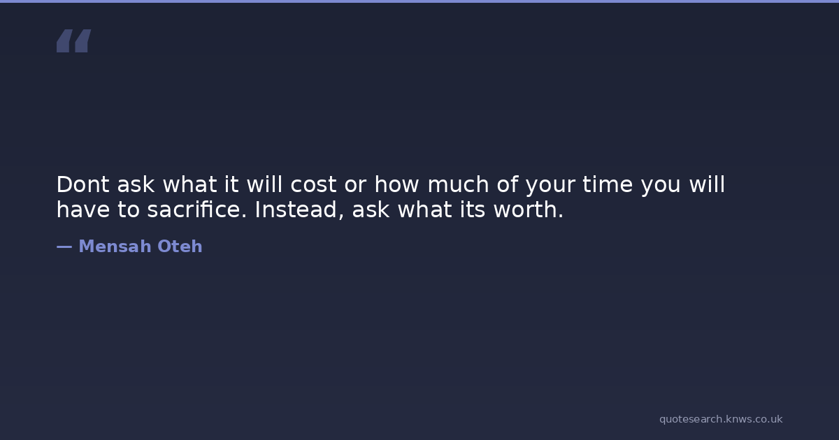 Dont ask what it will cost or how much of your time you will have to sacrifice. Instead, ask what its worth.
