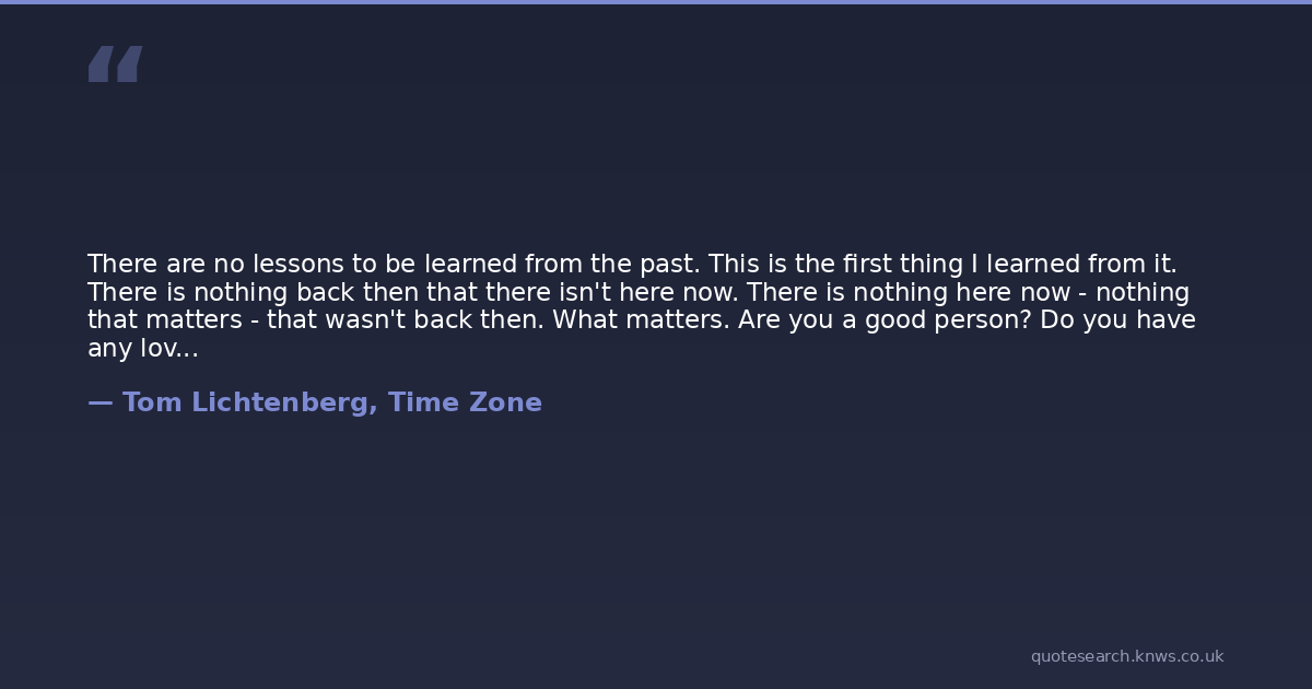 There are no lessons to be learned from the past. This is the first thing I learned from it. There is nothing back then that there isn't here now. There is nothing here now - nothing that matters - that wasn't back then. What matters. Are you a good person? Do you have any love in your heart? What would you do in a given circumstance? It all comes down to something like that.