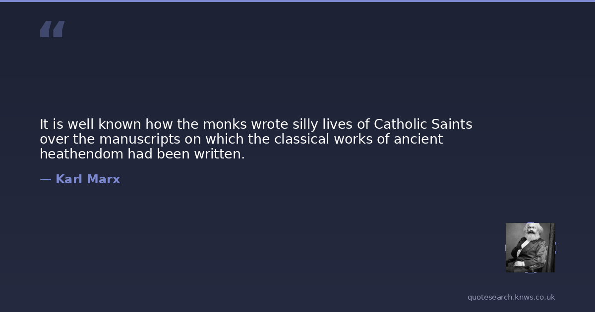 It is well known how the monks wrote silly lives of Catholic Saints over the manuscripts on which the classical works of ancient heathendom had been written.