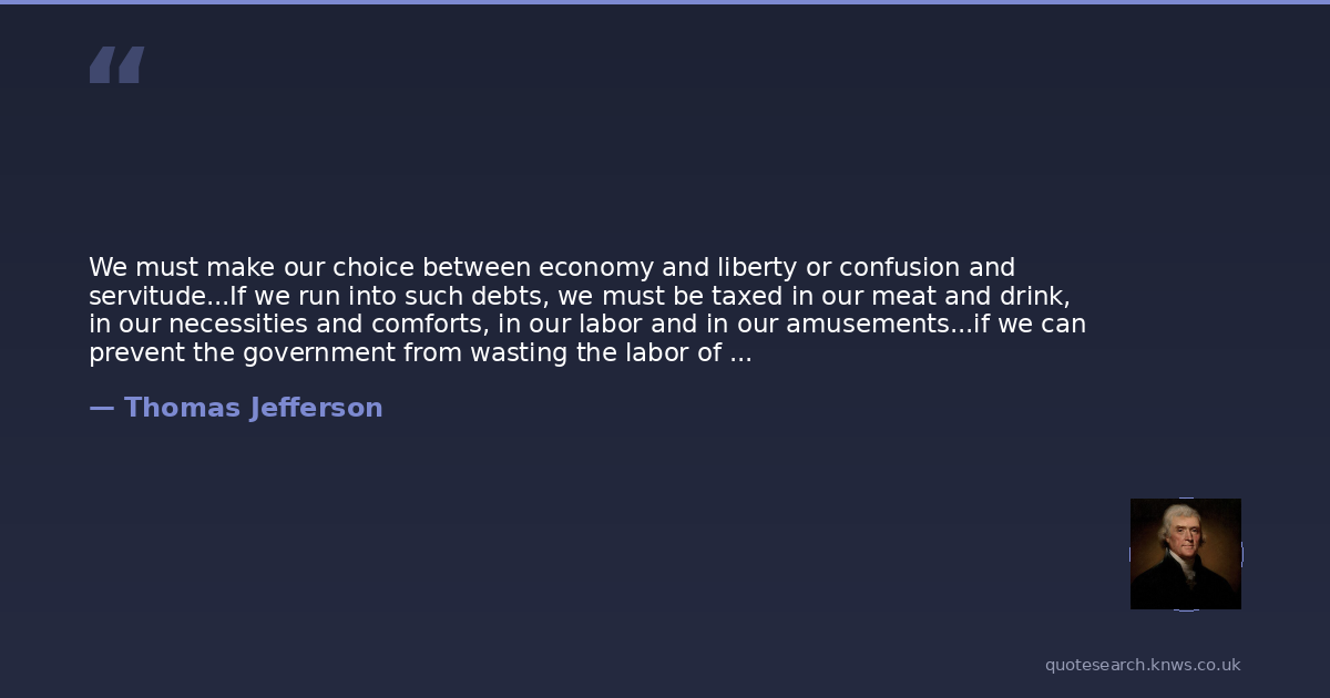 We must make our choice between economy and liberty or confusion and servitude...If we run into such debts, we must be taxed in our meat and drink, in our necessities and comforts, in our labor and in our amusements...if we can prevent the government from wasting the labor of the people, under the pretense of caring for them, they will be happy.