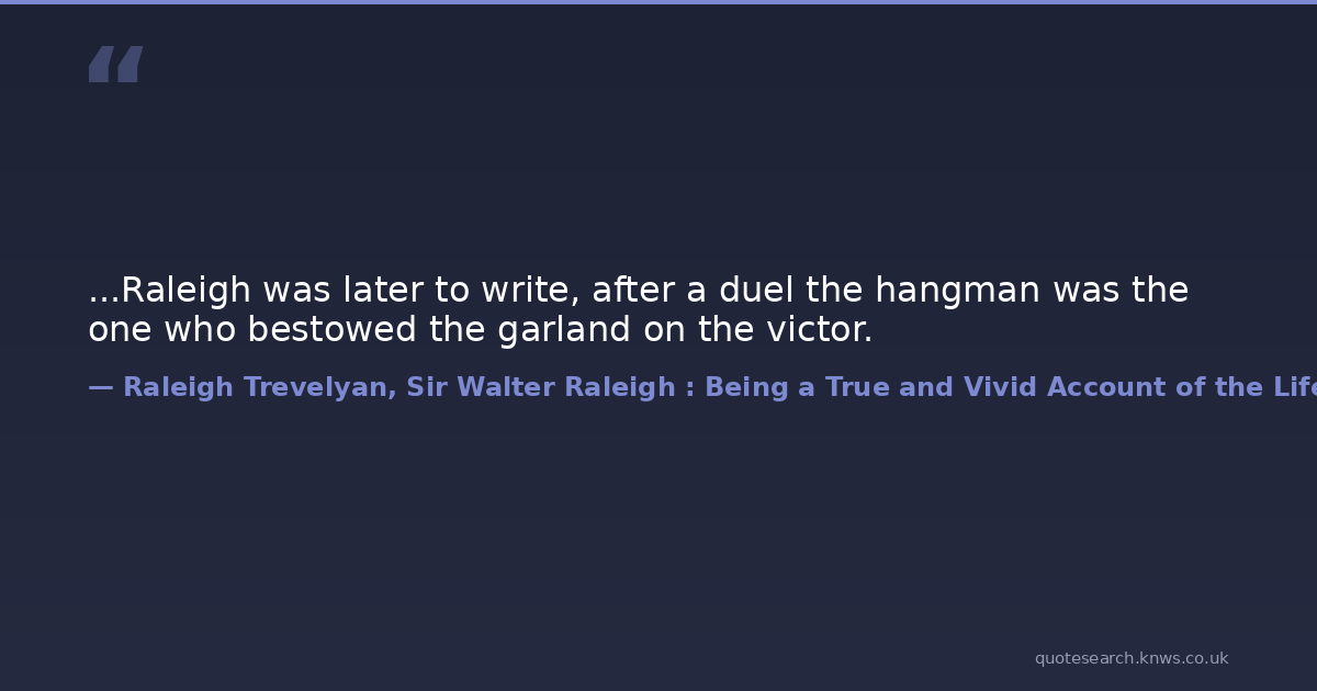 ...Raleigh was later to write, after a duel the hangman was the one who bestowed the garland on the victor.