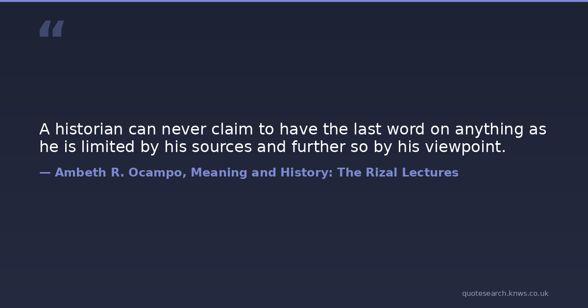 A historian can never claim to have the last word on anything as he is limited by his sources and further so by his viewpoint.