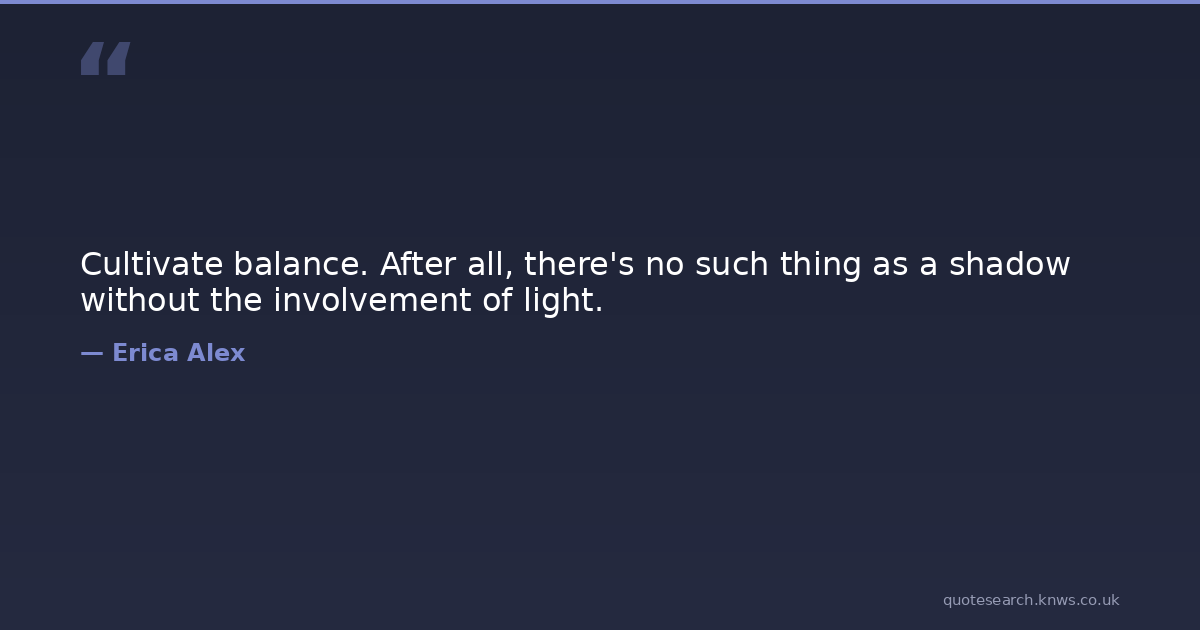 Cultivate balance. After all, there's no such thing as a shadow without the involvement of light.