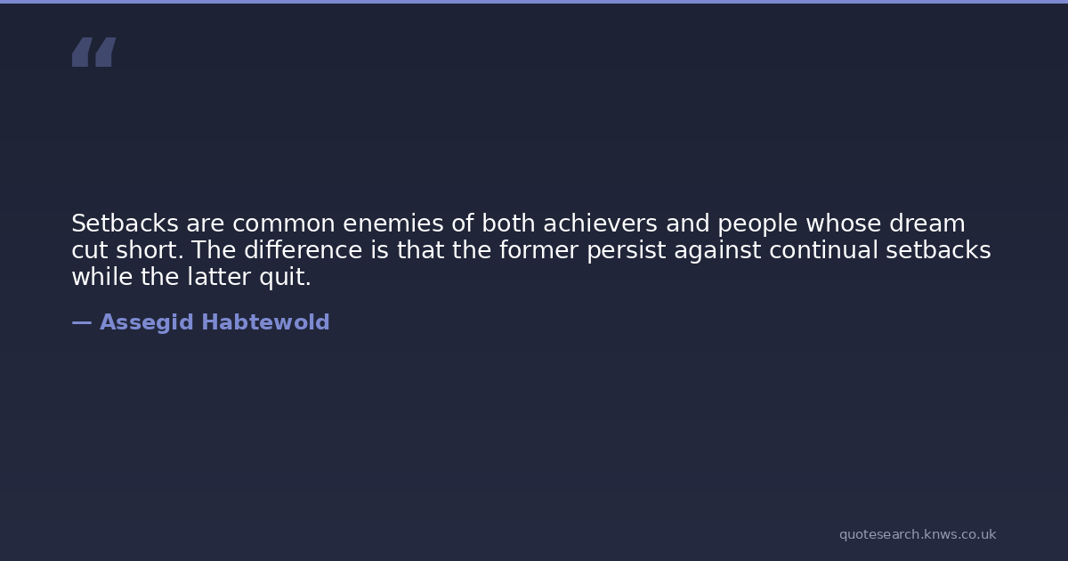 Setbacks are common enemies of both achievers and people whose dream cut short. The difference is that the former persist against continual setbacks while the latter quit.