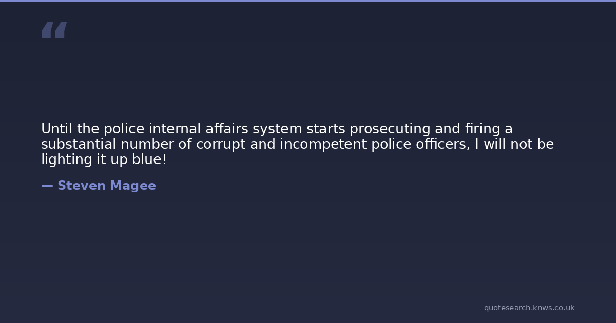 Until the police internal affairs system starts prosecuting and firing a substantial number of corrupt and incompetent police officers, I will not be lighting it up blue!
