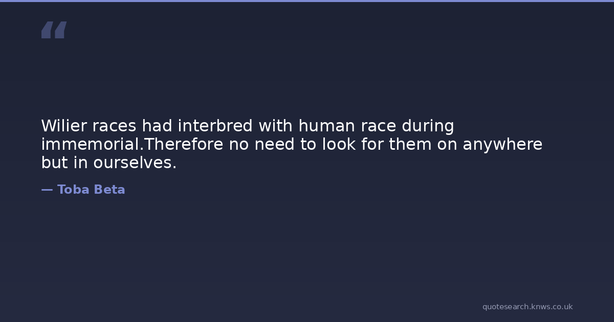 Wilier races had interbred with human race during immemorial.Therefore no need to look for them on anywhere but in ourselves.